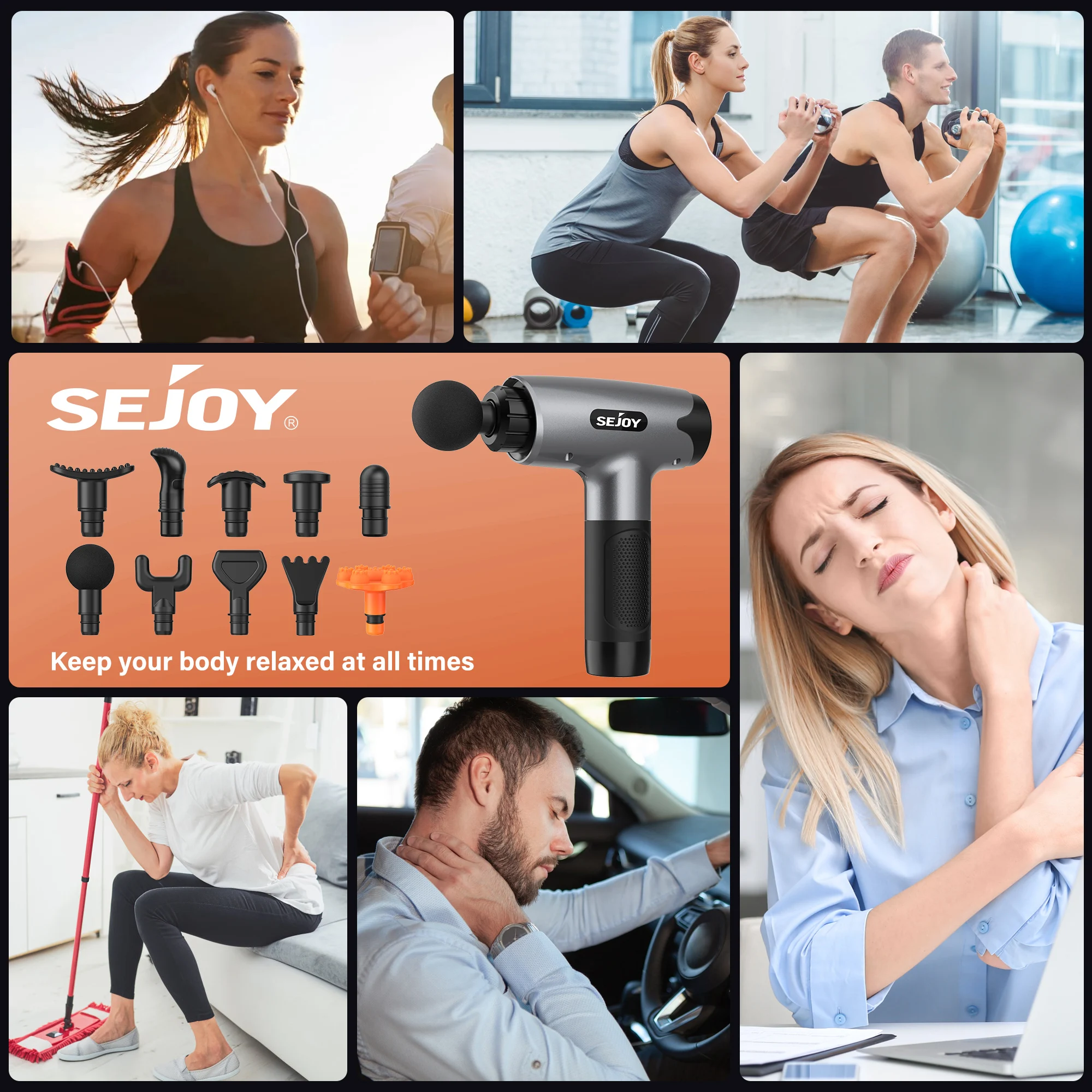 Quick Pain Relief: The SEJOY deep tissue massage gun has a high penetration force of 10mm, up to 2800 rpm, which effectively relieve muscle fatigue and pain, and let you enjoy the comfortable experience brought by deep tissue massage gun, so as to restore the best state of your body