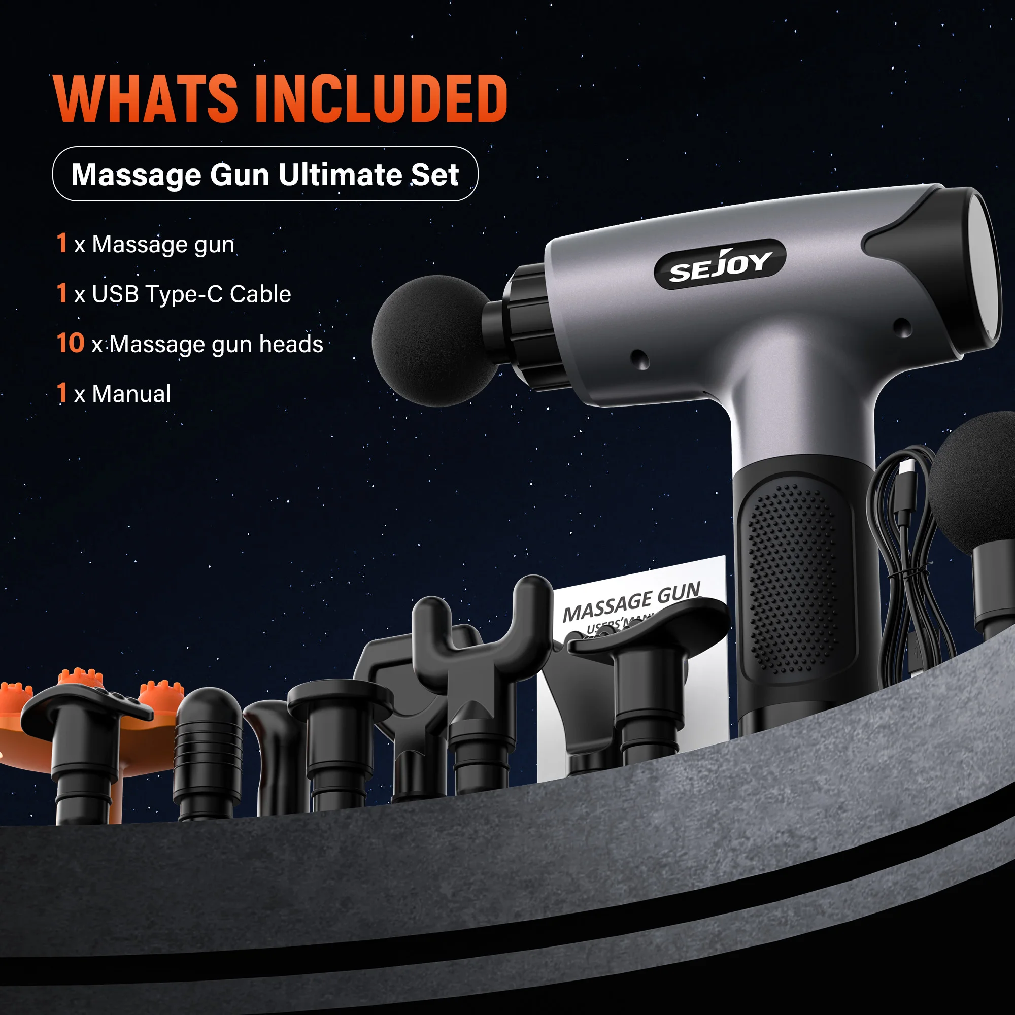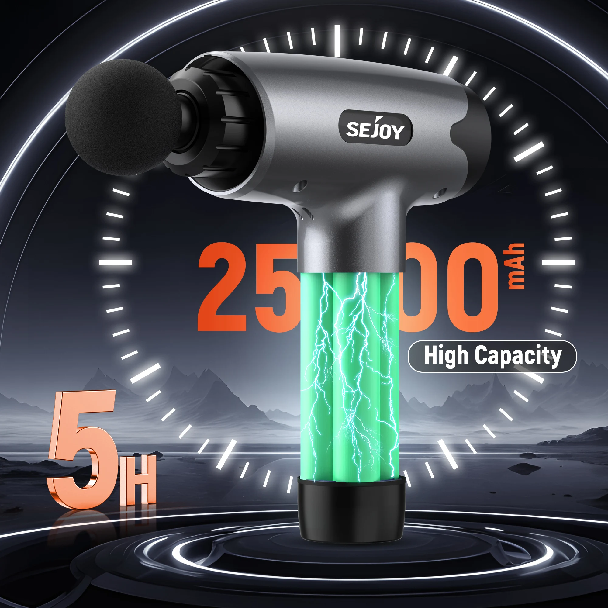 Smart LED Touch Screen: The massager gun is equipped with an intelligent LED touch screen design and battery display design, allowing you to easily adjust the speed level and view the remaining battery. SEJOY unique flowing light design also makes the operation more technological