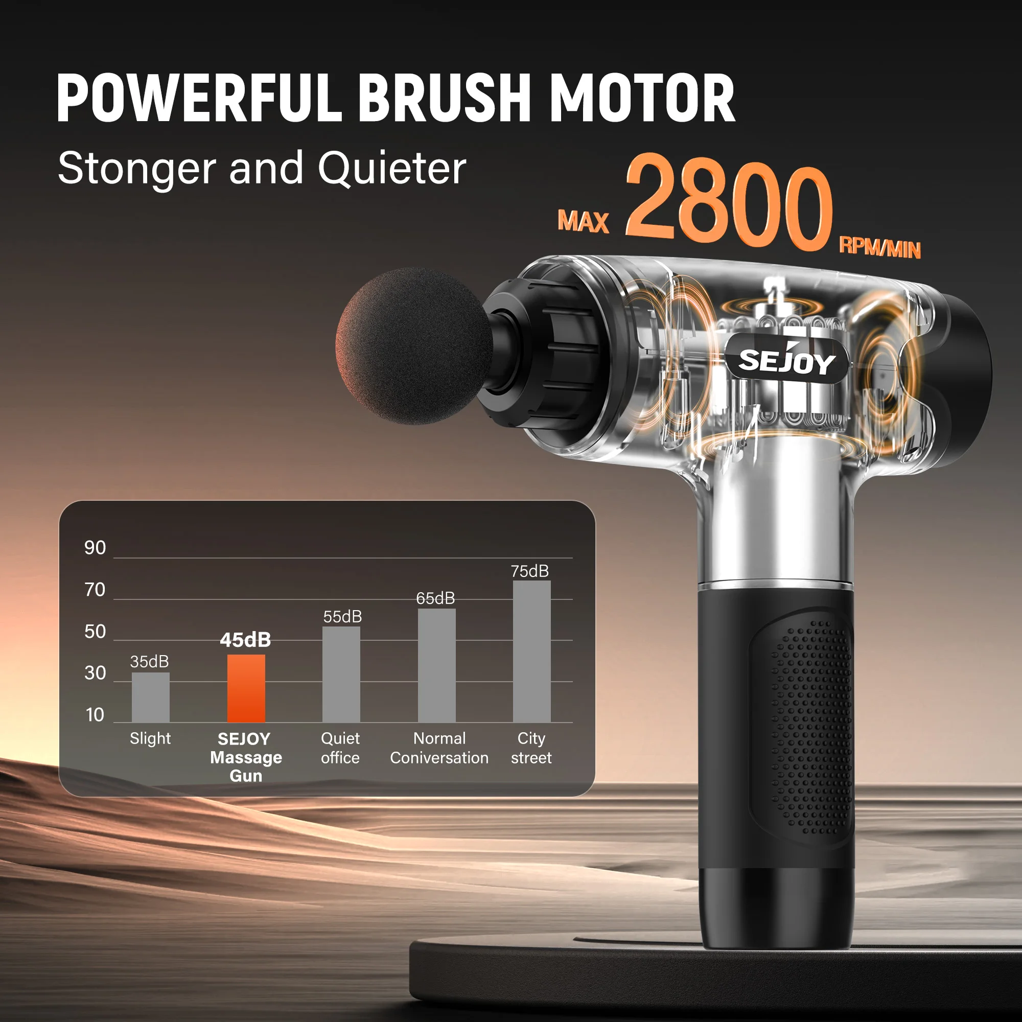 Adjustable 30 Speeds Level Design: For different muscle soreness problems, the SEJOY deep tissue massage gun is equipped with multiple speed levels from low, medium to high, and you can find the appropriate amplitude to alleviate all muscle soreness problems