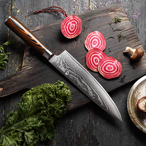 VG-10 JAPANESE DAMASCUS STEEL HIGH CARBON MATERIAL: Expertly crafted from 67 Layers VG-10 Japanese high carbon stainless steel ensures exceptional strength, durability and stain resistance. Vg-10 Japanese super steel cutting core at 62+ Rockwell hardness. Vacuum heat treatment and nitrogen cooling technique are implemented, thus get the best characterization of the steel