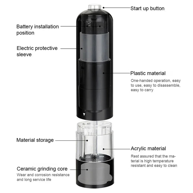 Material: The pepper grinder is made of stainless steel and ABS plastic, rust proof and corrosion resistant, will not affect the flavor of the spices ground.