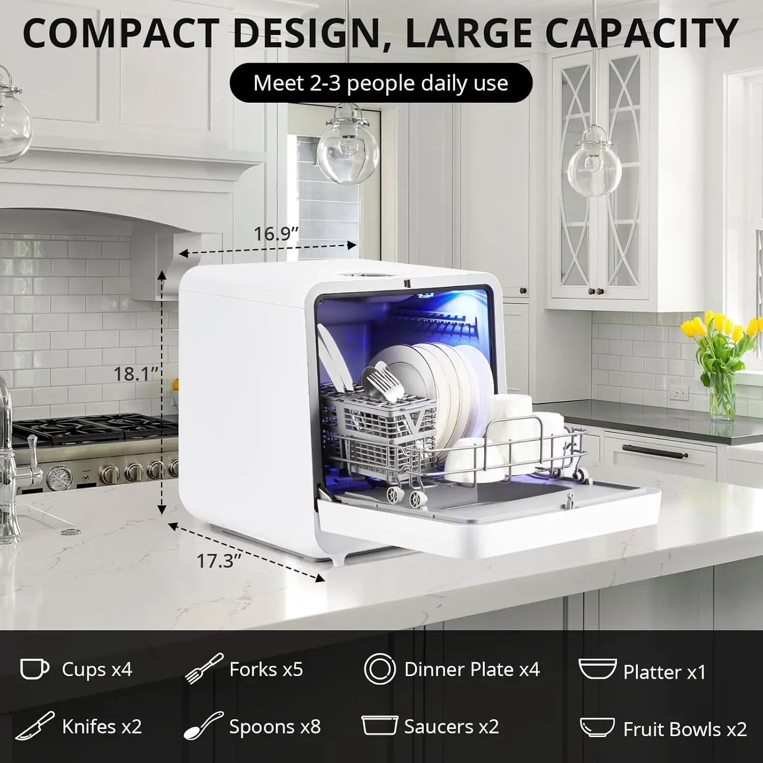 Low Noise Operation: This countertop dishwasher employs advanced silent technology, operating at an extremely low noise level to minimize disruptions to your daily activities or rest. Its optimized design incorporates effective noise-reduction materials and water flow nozzles to significantly lessen vibration and sound, making it perfect for home and open kitchen settings.