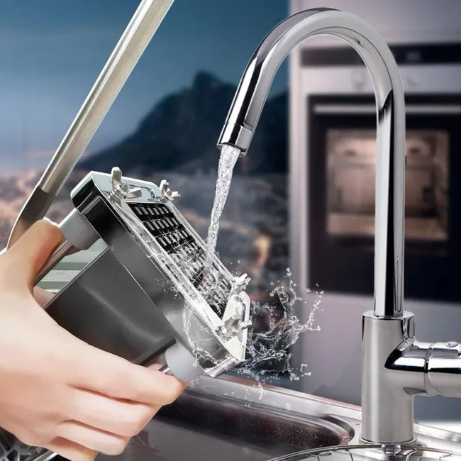 Easy To Clean: To clean the potato chopper after use, you can wash it with sprayer on kitchen faucet or use dishwasher. Besides, the blade is very sharp so be careful when cleaning. Since the blades are removable, we also recommend removing the blades for separate cleaning if thorough cleaning is required