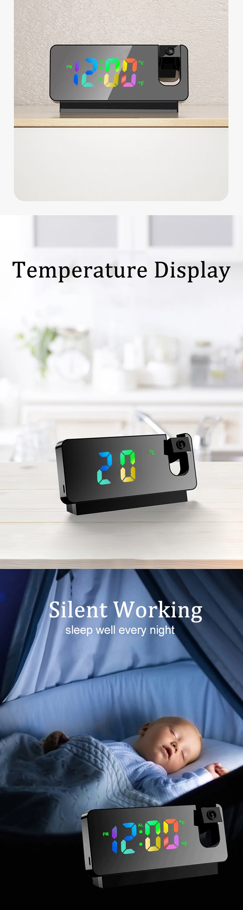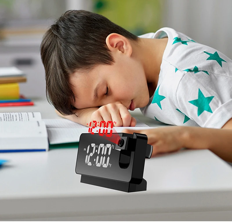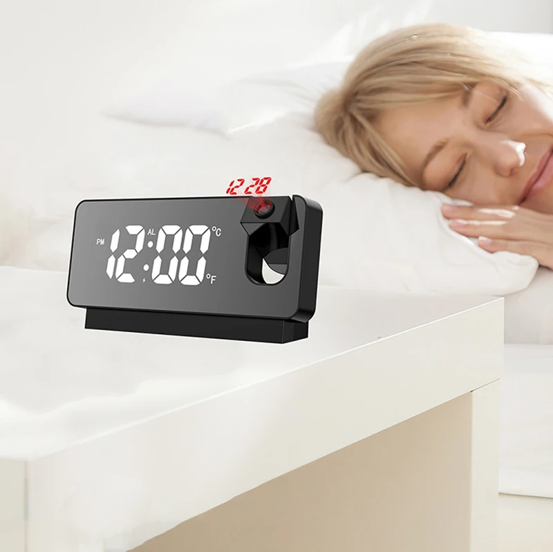 1 180° Flip Projection & Adjustable Brightness: Projects time onto walls/ceilings (10-16 ft range) with 3-level brightness adjustment.