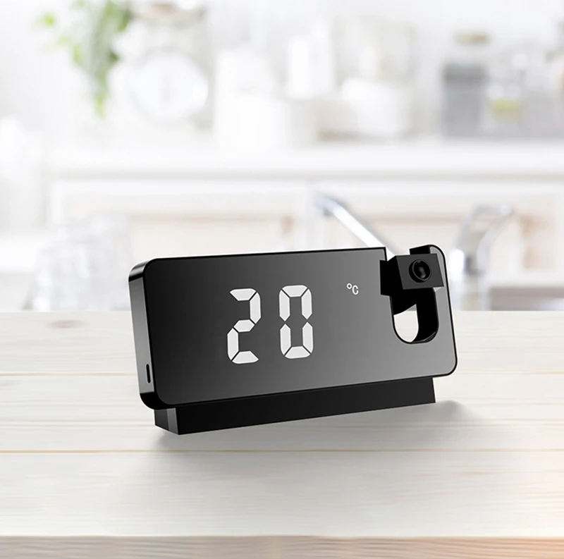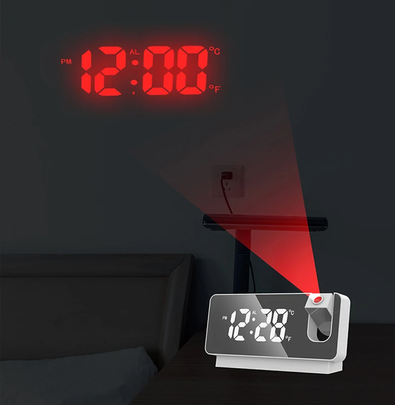 Digital Projection Alarm Clock with 180° Flip Display, Mirror Design & Dual Alarms