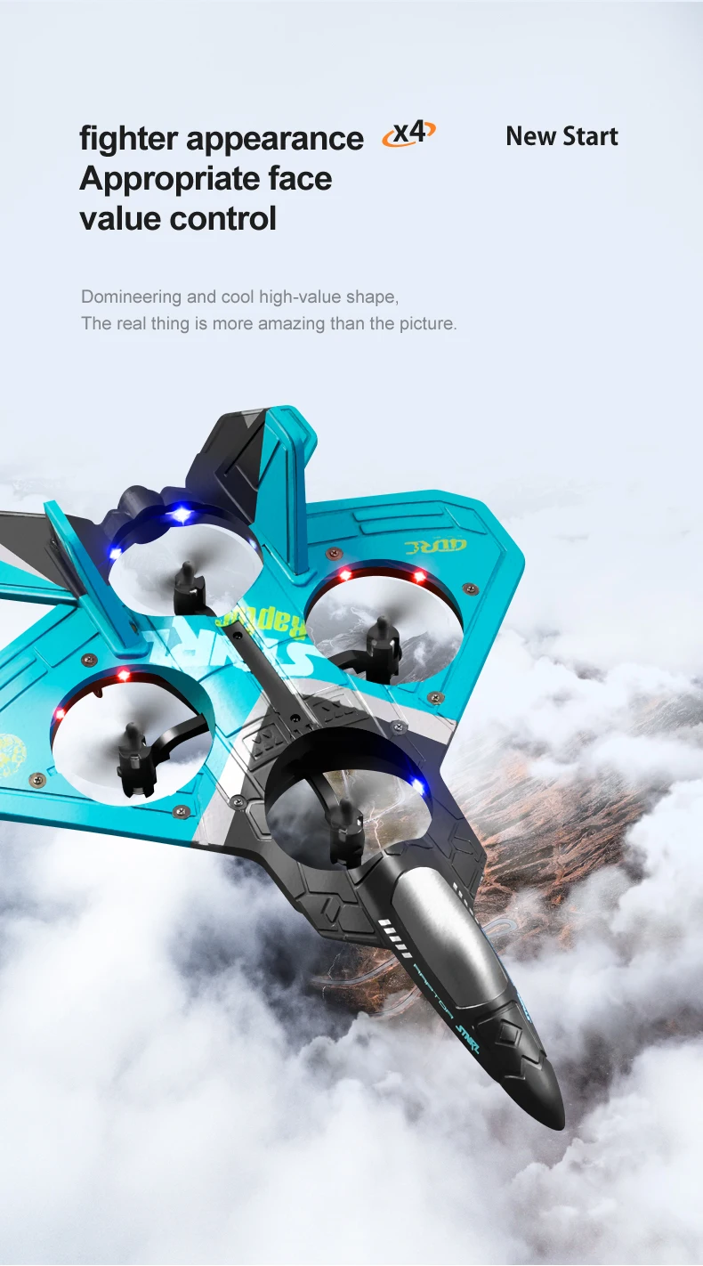 - Excellent Design: 4DRC V17 Plane No Assembling Required And Getting To Fly When You Open The Box. Press A Button On Remote Control, The Fighter Jet Drone Will Flip 360 Degree When Flying.. It Adopts 6 Axis Gyro Flight For Very Stable Flight Experience. One Key Take Off And Landing. It Is Easy To Fly For Kids, Beginners And Adults: Help Beginners Learn To Fly Step By Step.