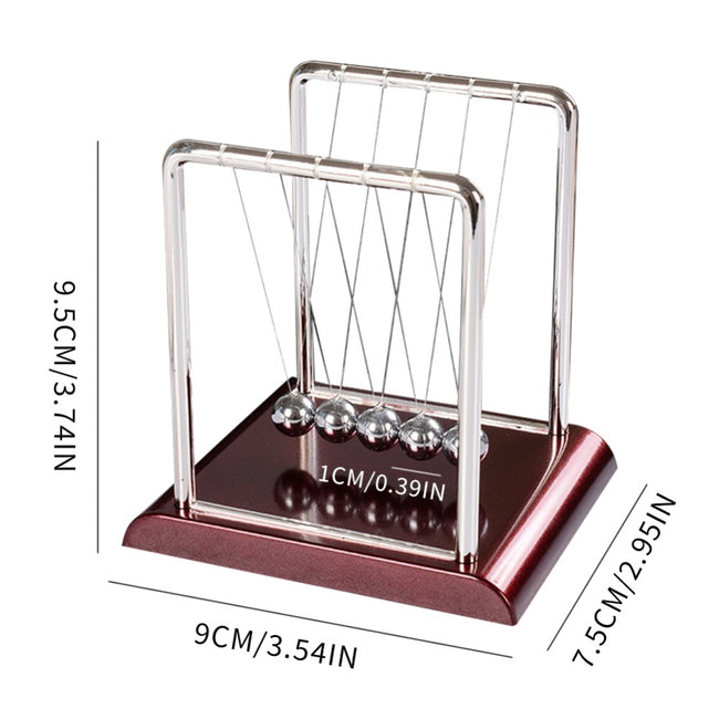This desktop display model is a version of Newton's cradle, a device that demonstrates the conservation of momentum and energy through a series of swinging spheres of the same size.